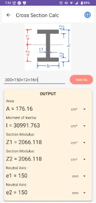 - By entering the required dimensions, you can calculate the cross-sectional area, moment of inertia, section modulus, and neutral axis position.