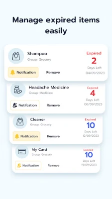 - Get a clear view of your expired items and their complete history, helping you make better decisions and prevent future waste. Set your preferred notification time and choose whether to have a notification sound. Never miss an expiry date again!