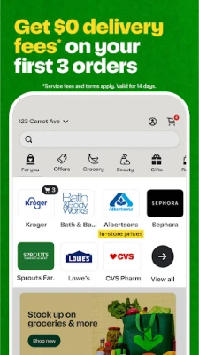 Get food delivery and grocery orders delivered directly to your door in as fast as 30 minutes with our app that helps with your shopping. Let Instacart connect you to your favorite food & drink spots, local grocery store or chain and get your goods in no time. Browse, shop, and eat with convenient grocery delivery in just a few taps! Plus, enjoy $0 delivery fee on your first three grocery orders within 14 days of the first order. Service fees, exclusions, and terms apply!