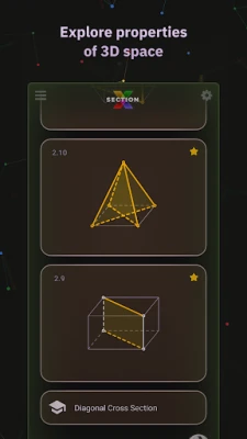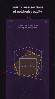 XSection is a trainer of solid geometry problem solving. It teaches you how to perceive 2D representation of polyhedra, lines, and planes from 3D Euclidean space. All the problems can be solved without complex calculations. The app contains the required theory facts and explanations. If you forgot a definition, you can instantly find it in the app’s glossary.